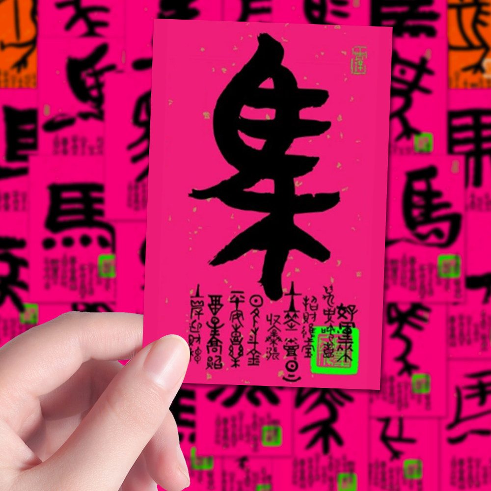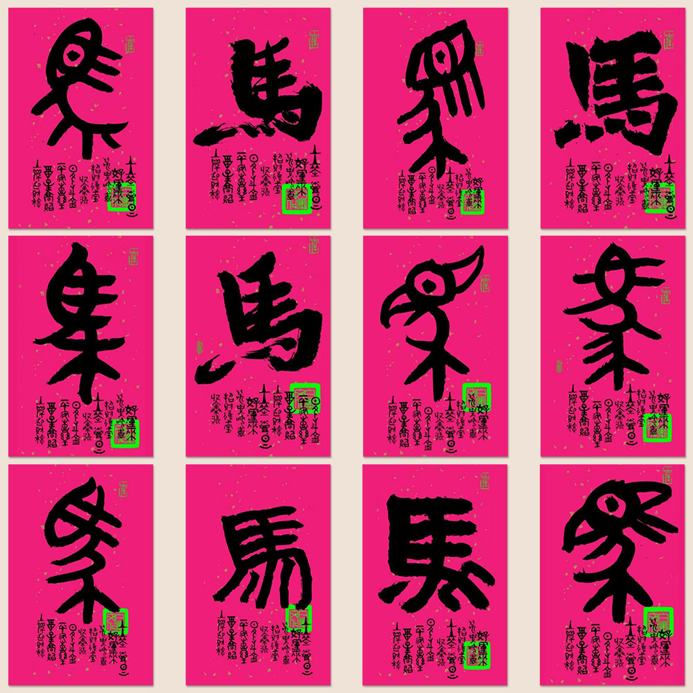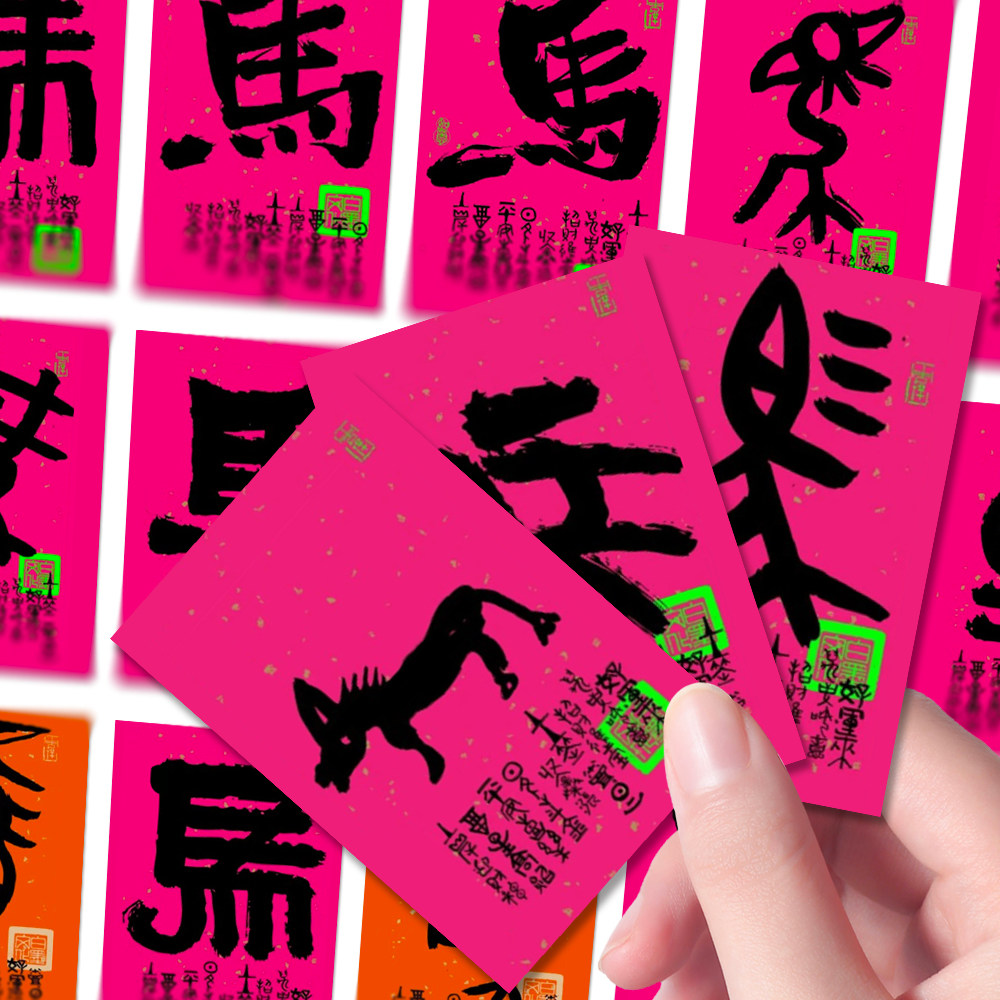 216张马字甲骨文汉字设计写法贴纸万马奔腾国风国潮文练习桌面贴