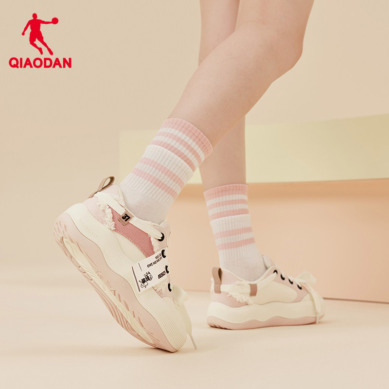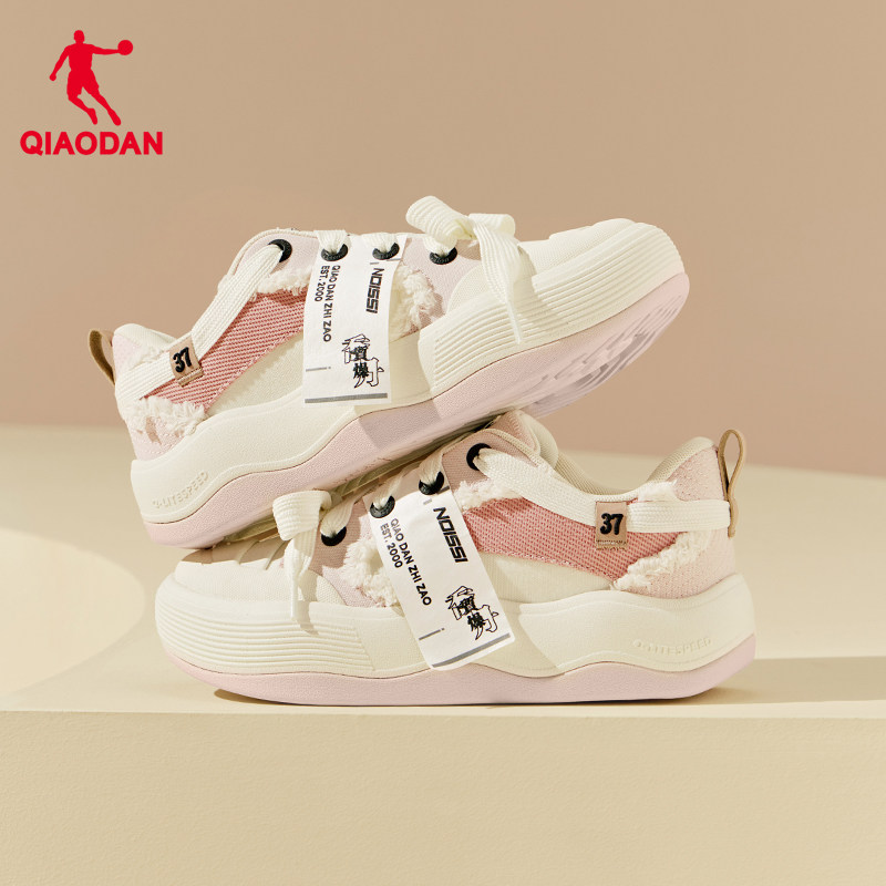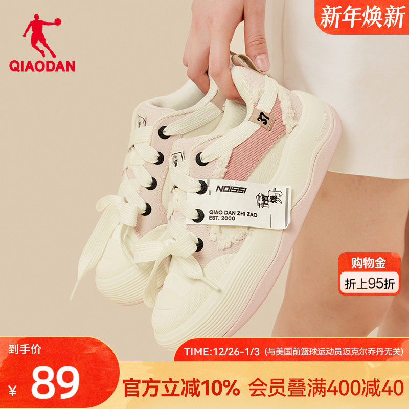 乔丹百搭冬季粉色帆布鞋女子运动休闲鞋厚底鞋增高透气板鞋贝壳头