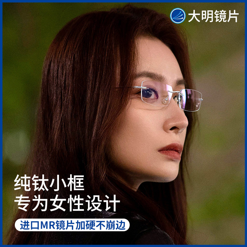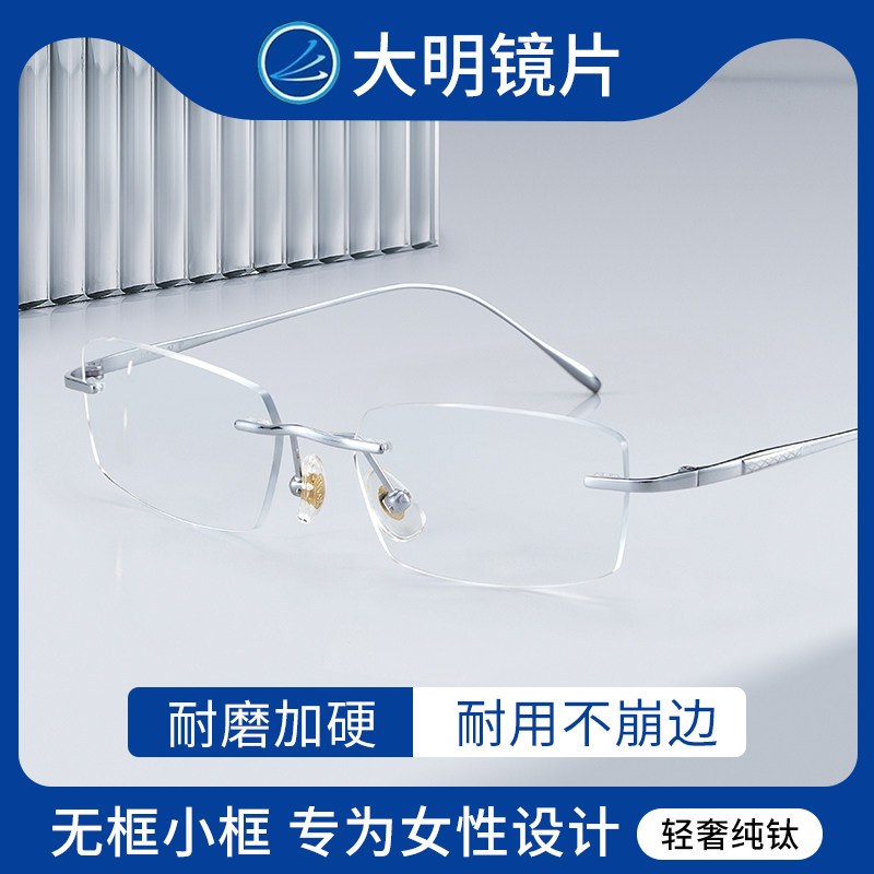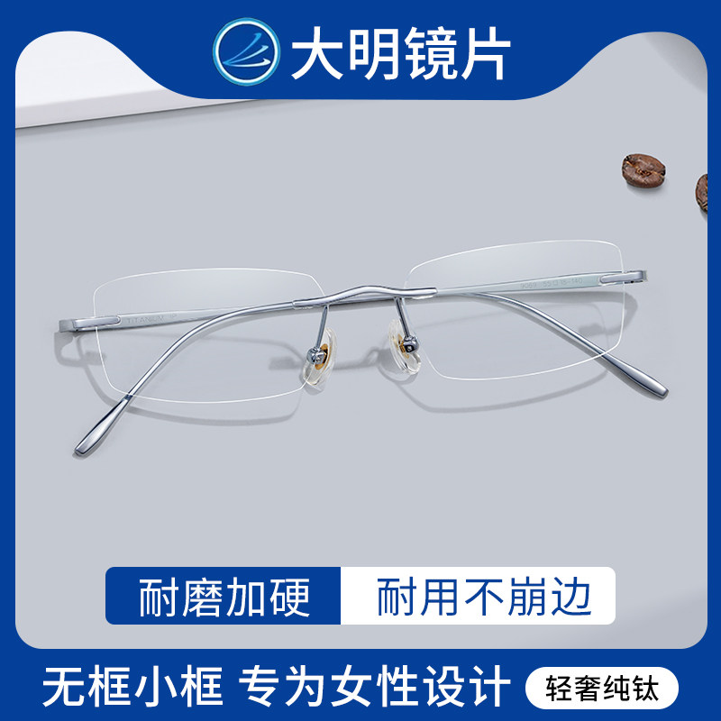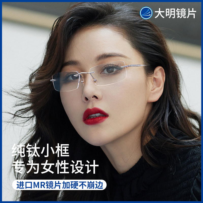 美潮眼镜明星同款无边框近视眼镜女款可配度数纯钛无框小尺寸镜框
