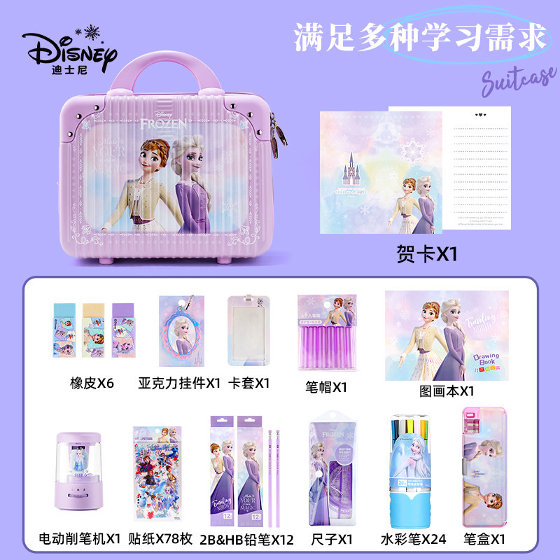 迪士尼手提箱文具套装全套工具女孩艾莎公主文具礼盒小学生学习用品儿童生日礼物女生送礼大礼包女童考试奖品