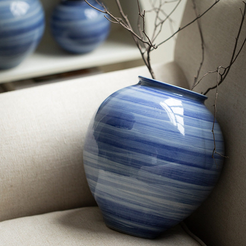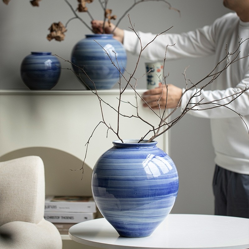 景德镇复古粗陶禅意大肚子花瓶民宿餐厅蓝田大海中古水培花器玄关