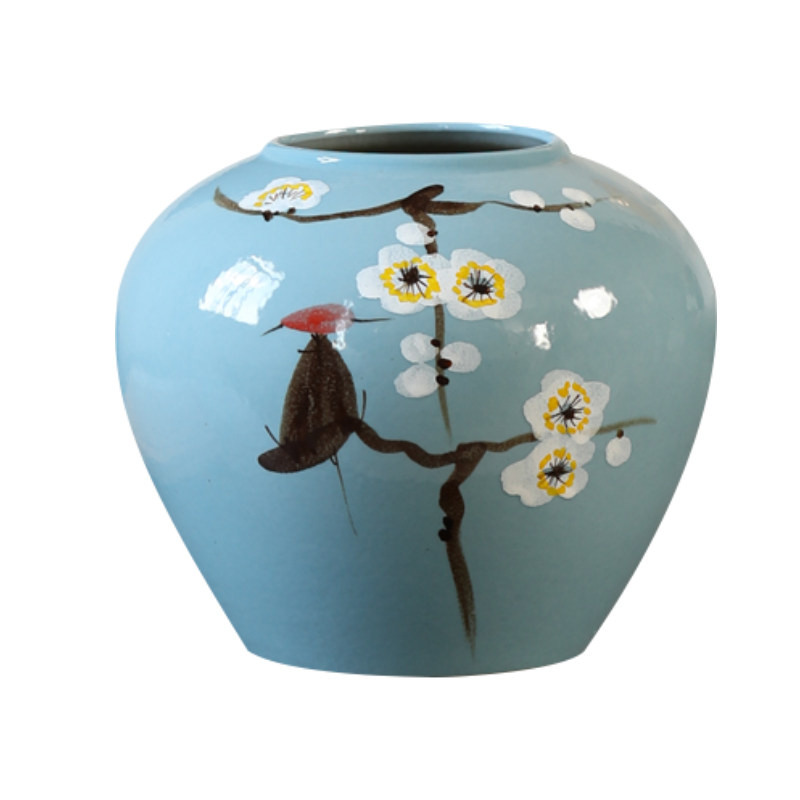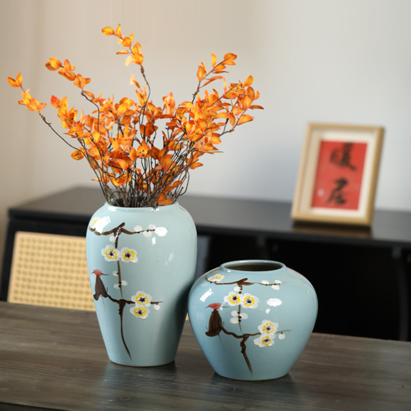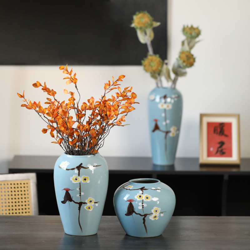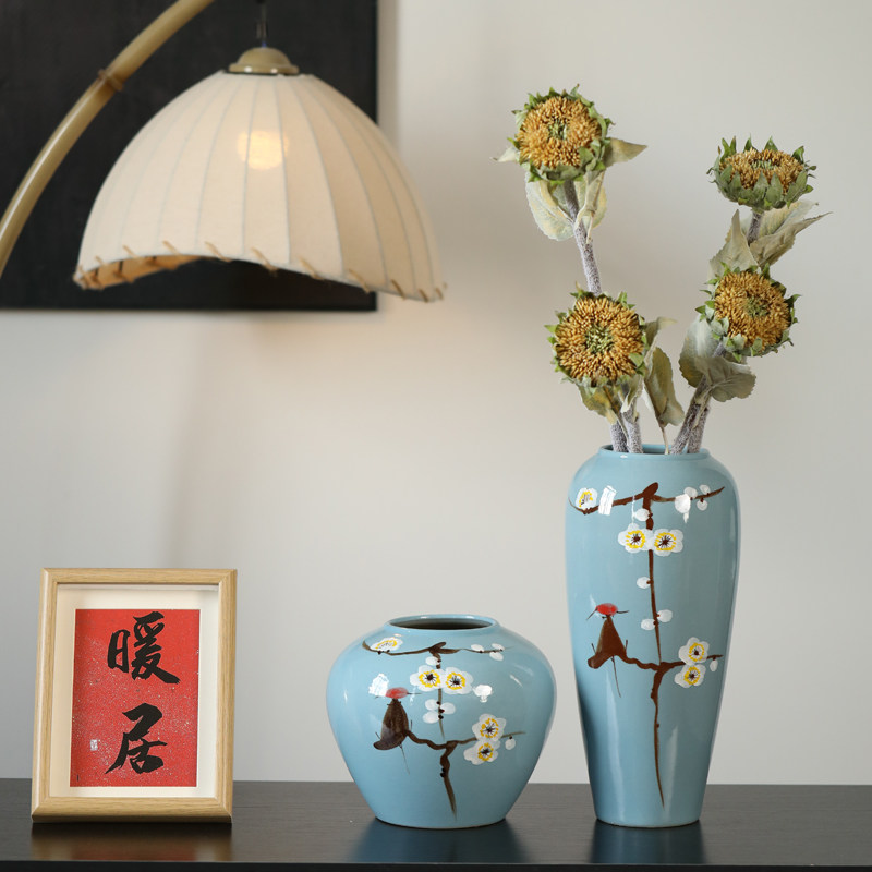 高级感新中式粗陶陶罐怀旧插花花器展示柜装饰品家居陶瓷花瓶玄关