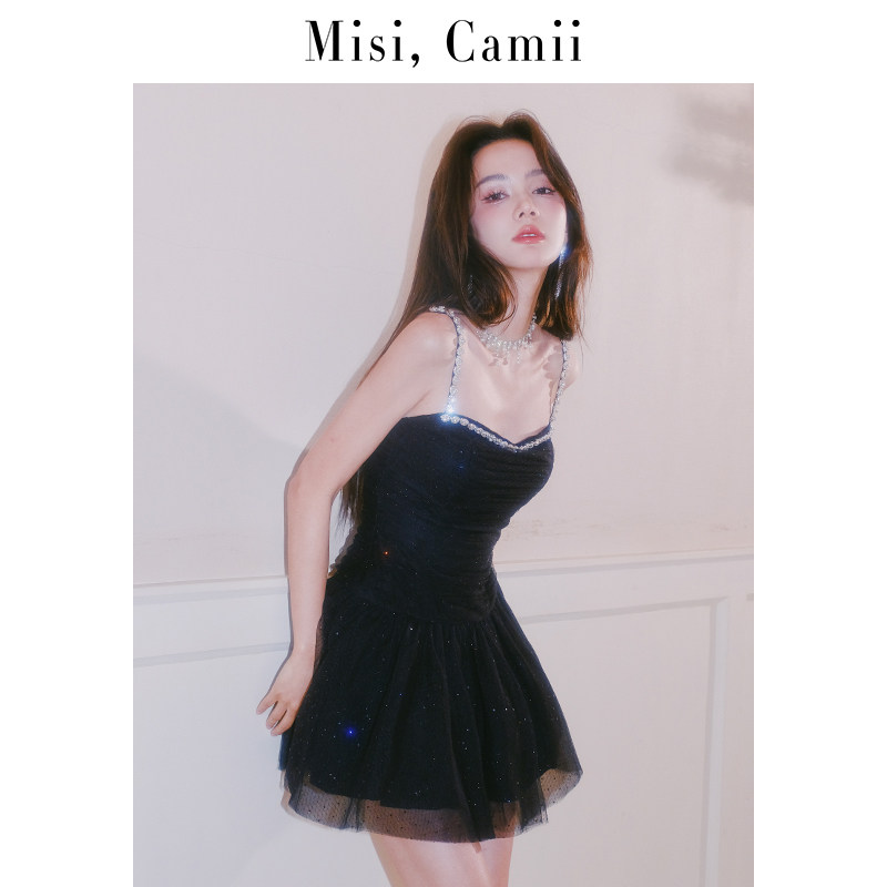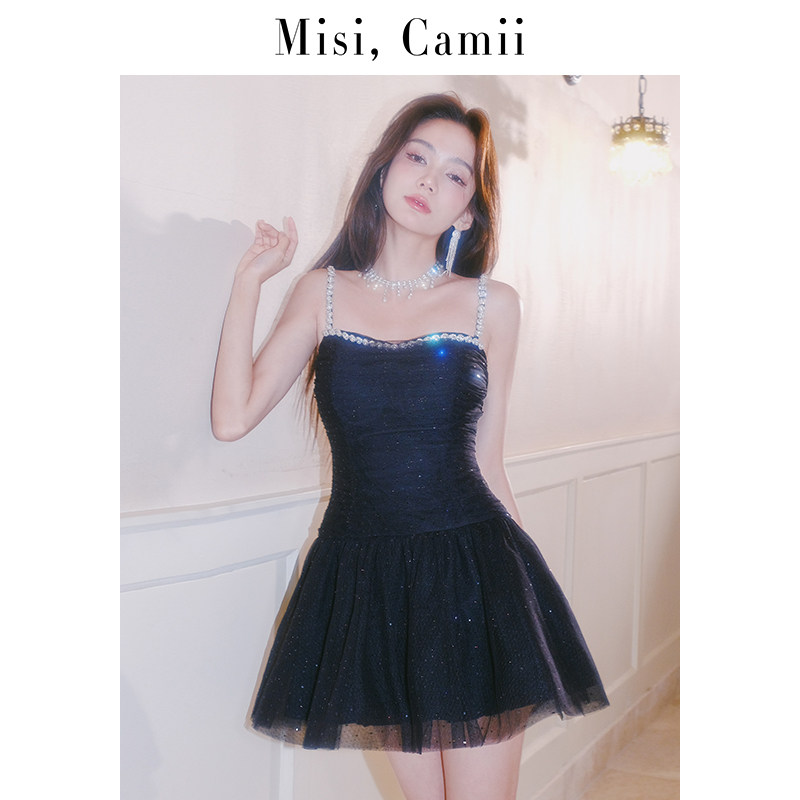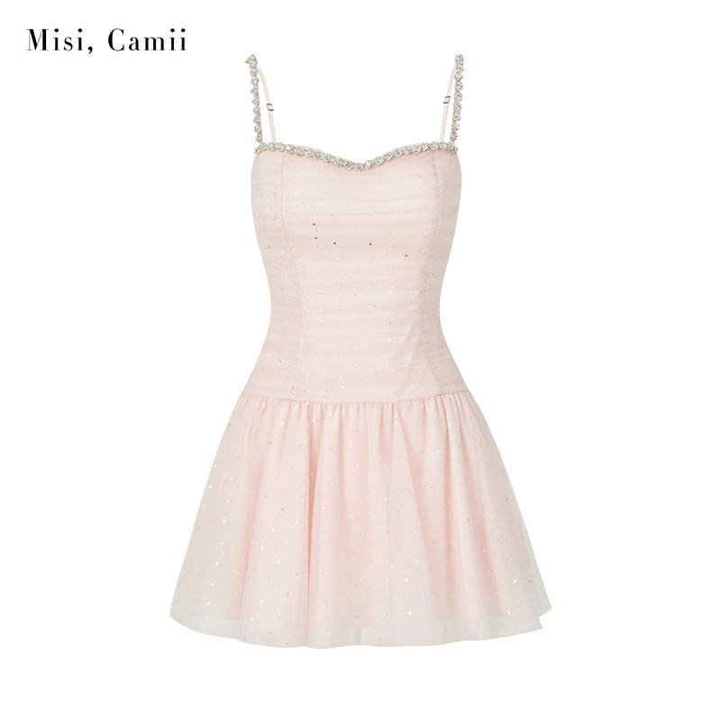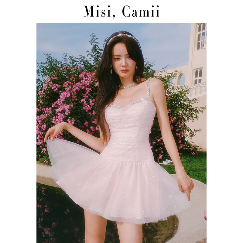 Misi.Camii梦幻闪粉网纱吊带连衣裙甜美夏季气质性感短裙小众纯色