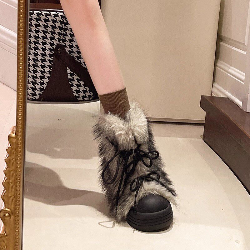 miu家厚底雪地靴女冬季真皮短靴羊毛侧拉链增高厚底加绒毛毛棉鞋