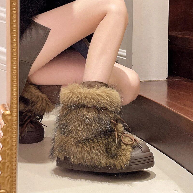 低帮厚底雪地靴女2025新款冬季懒人一脚蹬毛毛棉鞋加绒加厚女鞋子