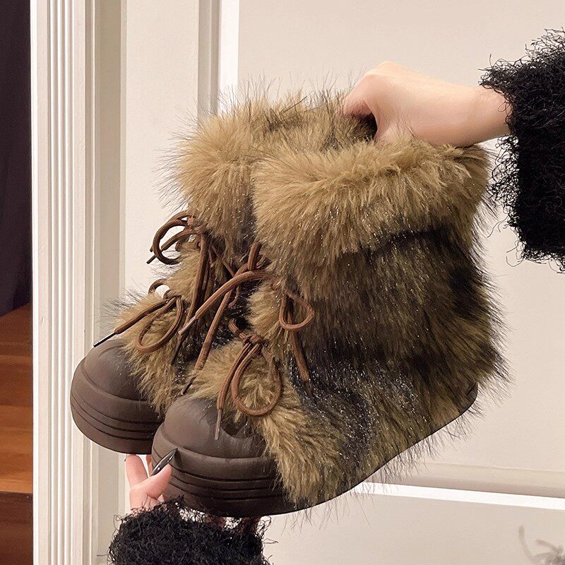 内增高厚底棕色长筒雪地靴女2025冬新款两穿加绒加厚中筒东北棉鞋