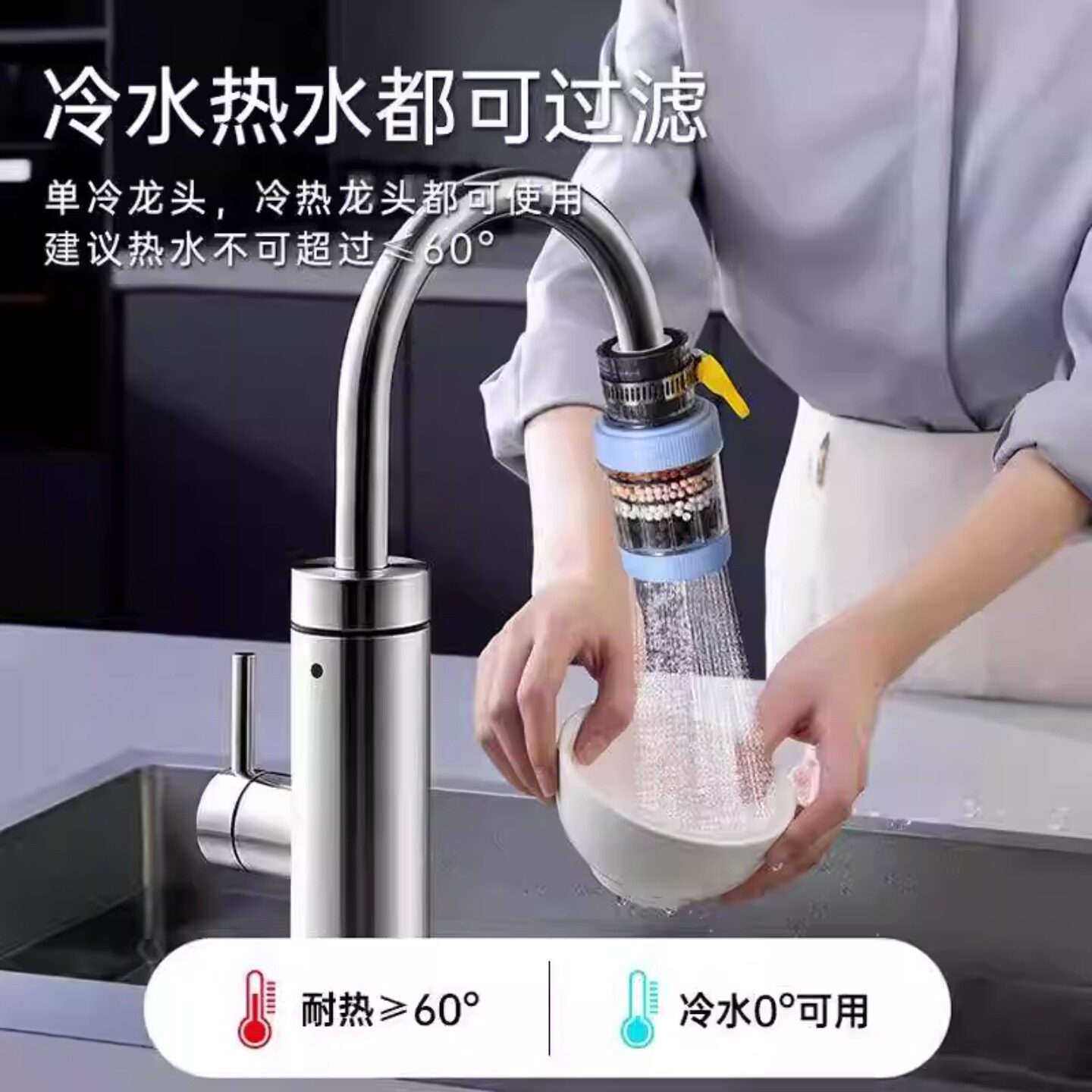 通用水龙头净水器过滤器净化器防溅花洒万能接头居家净水过滤器