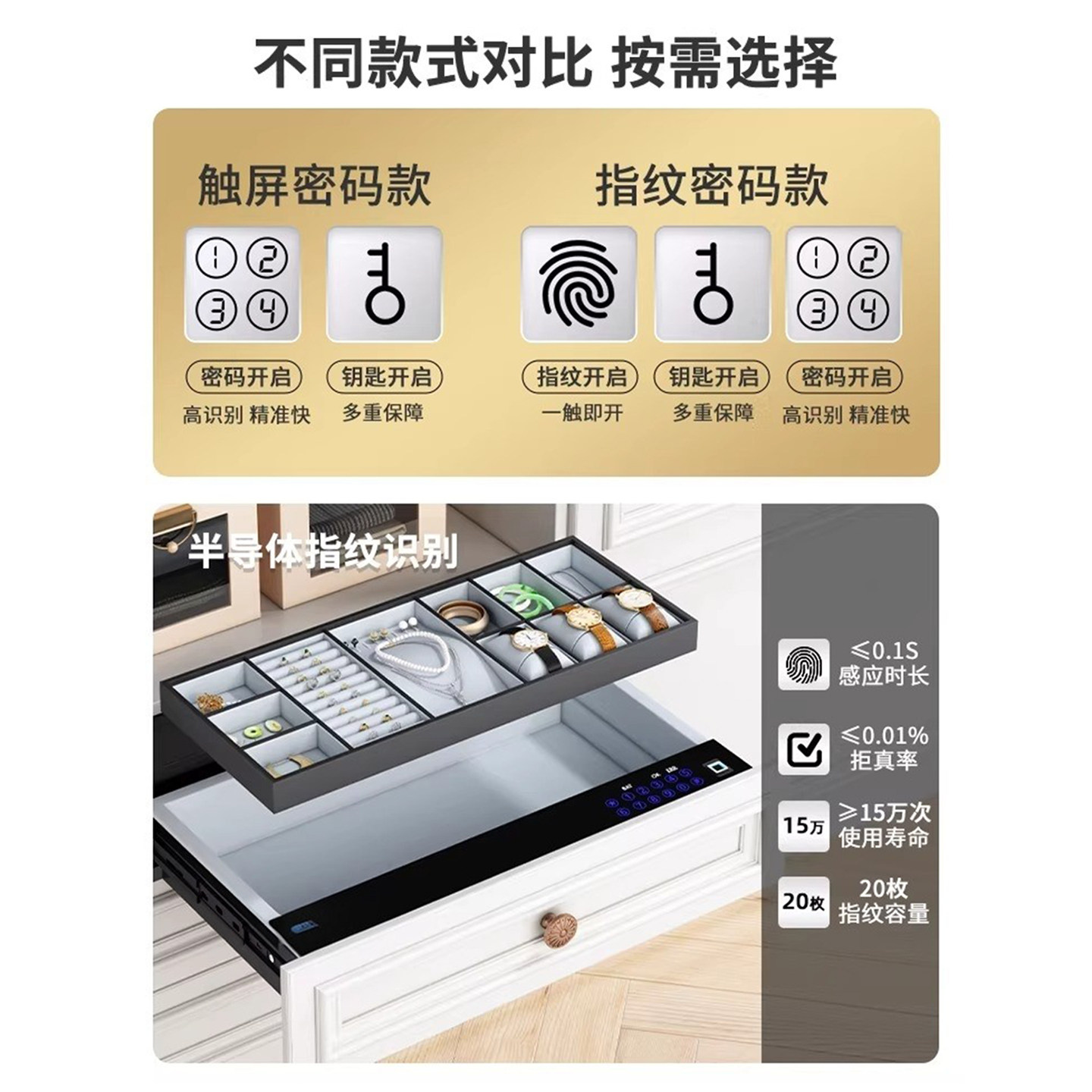 指纹密码抽屉式保险箱小型隐形珠宝首饰盒防盗保险柜家用2025新款