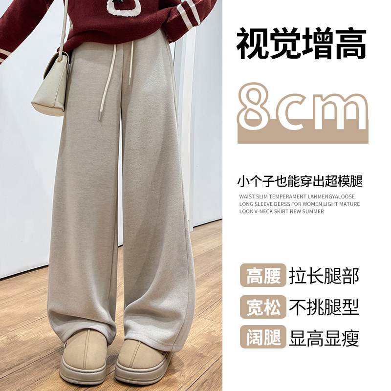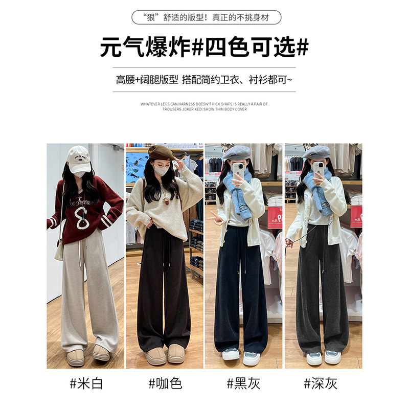 唐狮DESSO秋冬新款糯米裤高腰垂感宽松加绒直筒阔腿裤5