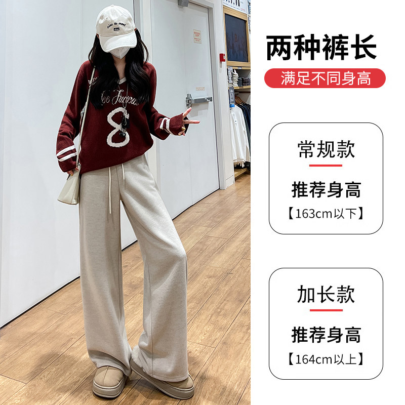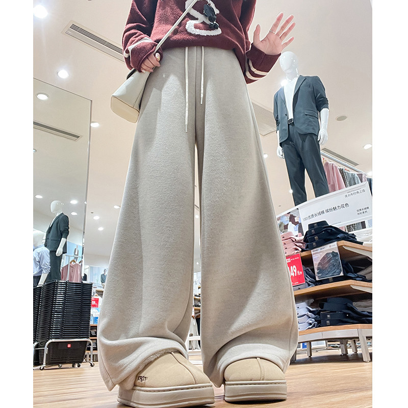 SIINSIIN加绒卫裤女2025新款阔腿运动裤休闲长裤冬季白色直筒裤子