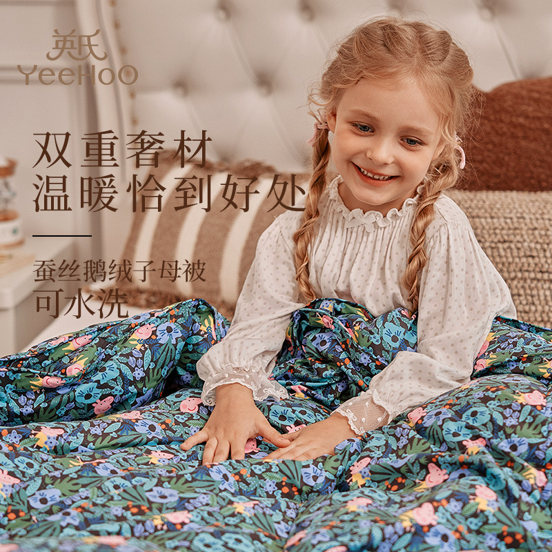 英氏儿童100%桑蚕丝被西伯利亚进口水洗鹅绒子母被婴幼儿静音盖被