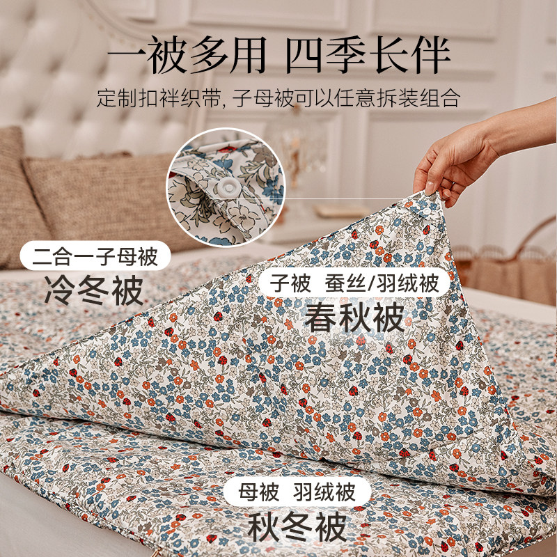 富安娜被子100%蚕丝被春秋被子母被二合一四季被芯冬被夏被空调被
