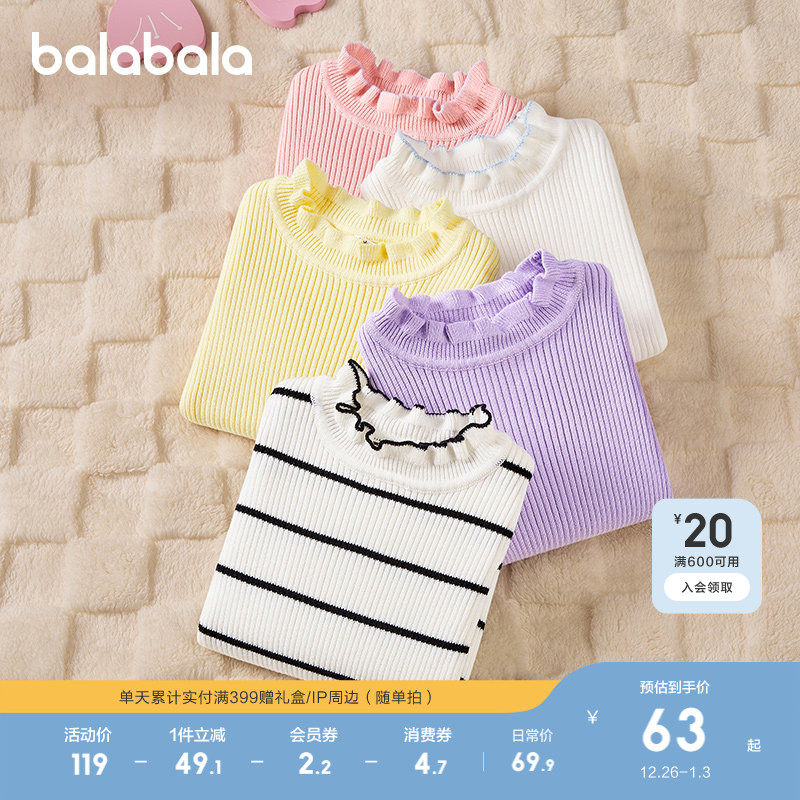 巴拉巴拉童装女童毛衣儿童秋冬装针织衫中大童宝宝木耳边毛衫甜美