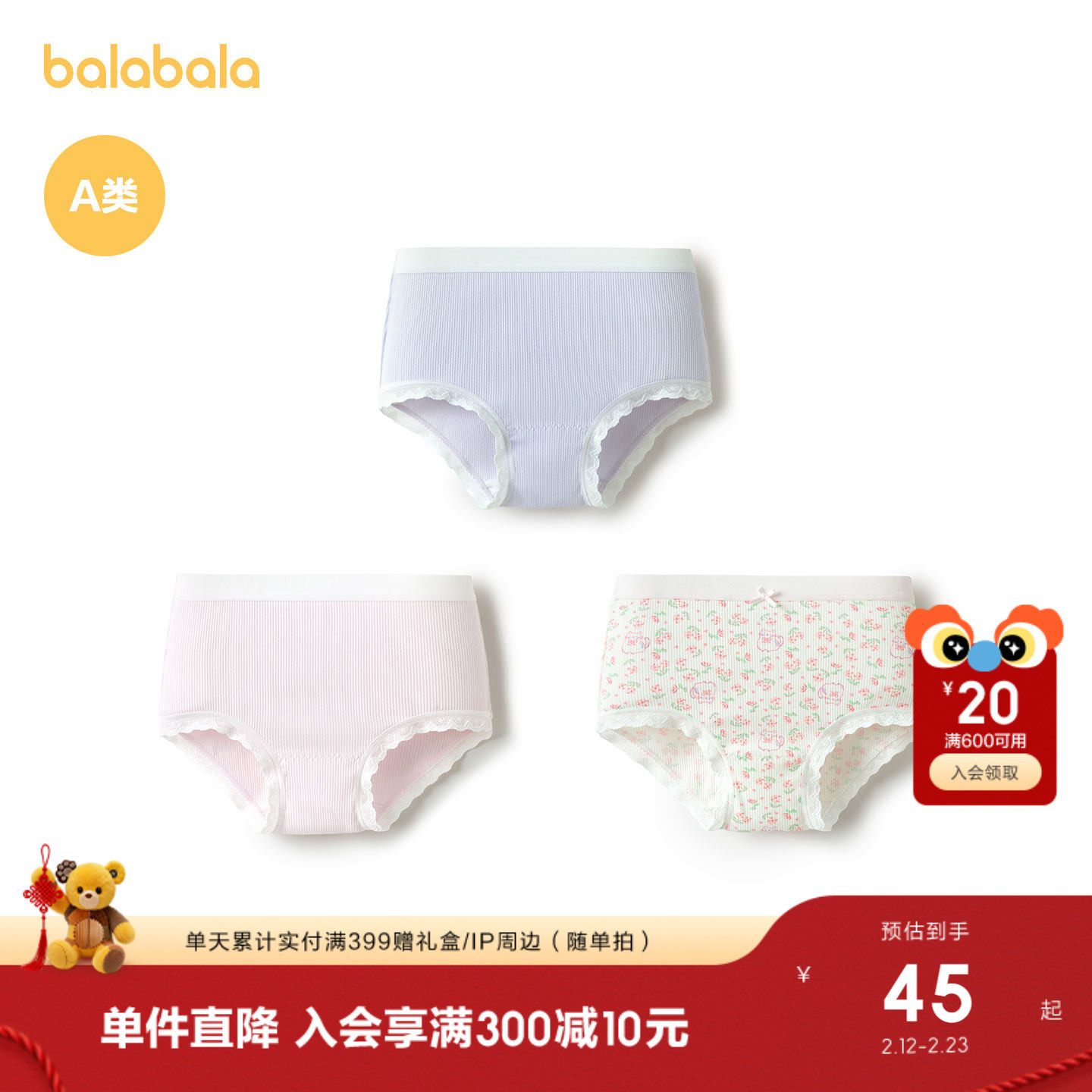 巴拉巴拉女童内裤棉a类儿童三角短裤子亲肤中大童小童宝宝三条装