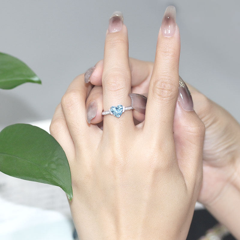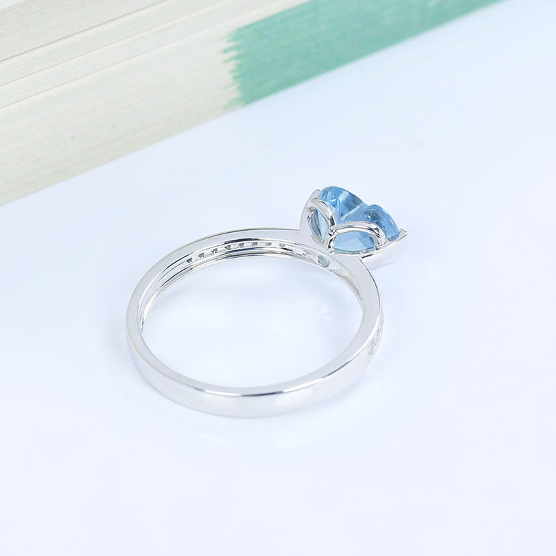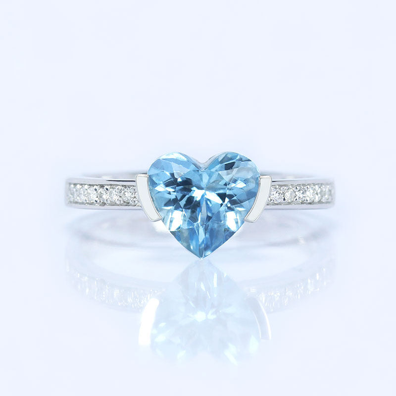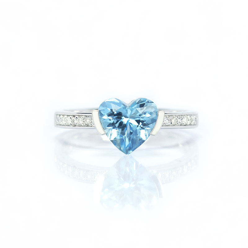 G18K白金圣玛利亚色天然海蓝宝石心形戒指 1克拉钻石戒指女款双证