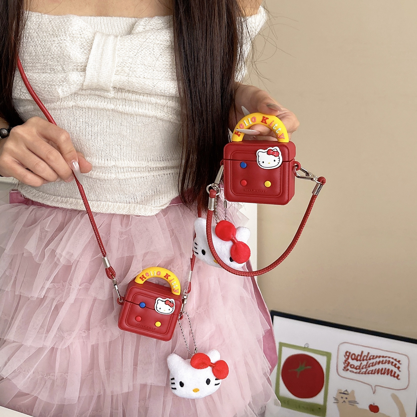 可爱kitty猫手提包适用airpods4保护套苹果耳机保护壳airpodspro2无线蓝牙耳机套ipod盒二三代airpods3耳机壳
