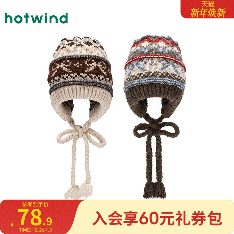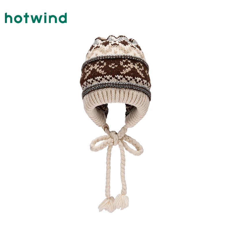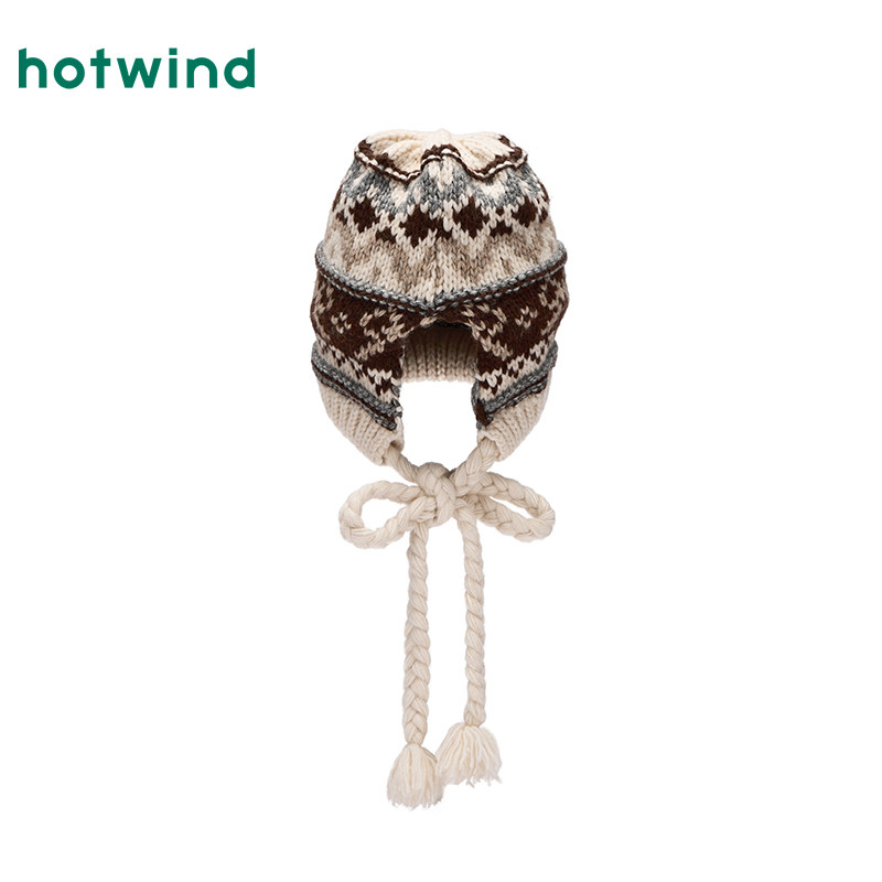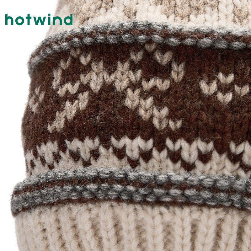 热风女士帽子2025年冬季新款时尚提花保暖冷帽护耳费尔岛毛线帽