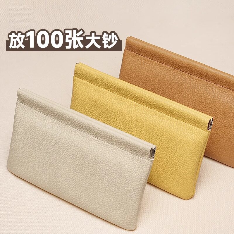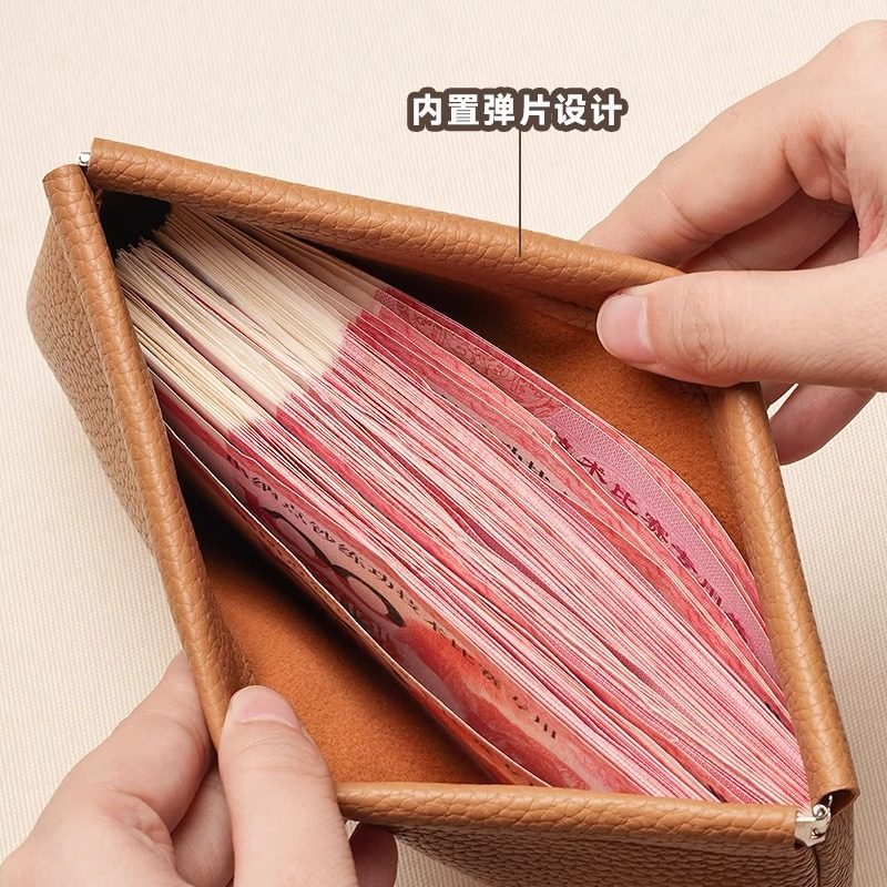 存钱夹钱册可放现金存钱本钱包女士2025新款简约软皮现金存放袋大容量长款钱夹大钞收纳小零钱包收纳册保护套