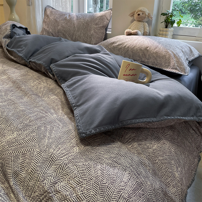 ins复古加厚磨毛四件套冬季100全棉纯棉被套床单人学生宿舍三件套