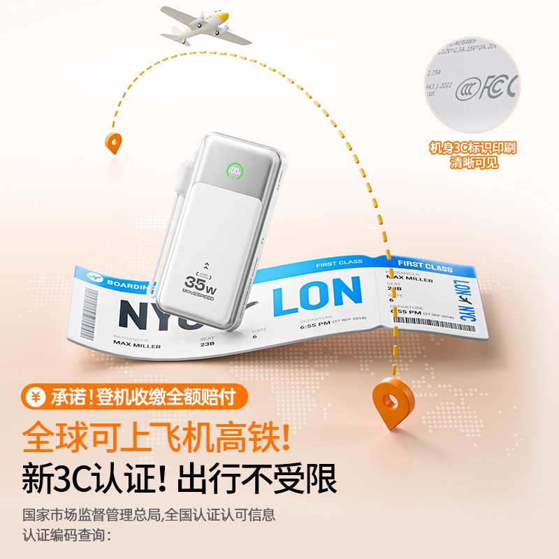 3C认证可上飞机【政府补贴15%】品胜2026新款彩豆3充电宝快充大容量超薄小巧便携带线移动电源适用苹果17小米
