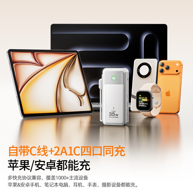 【充电宝3c认证可上飞机】移速2026新款大容量20000毫安自带线快充移动电源磷酸铁锂适用小米苹果17小盾宝