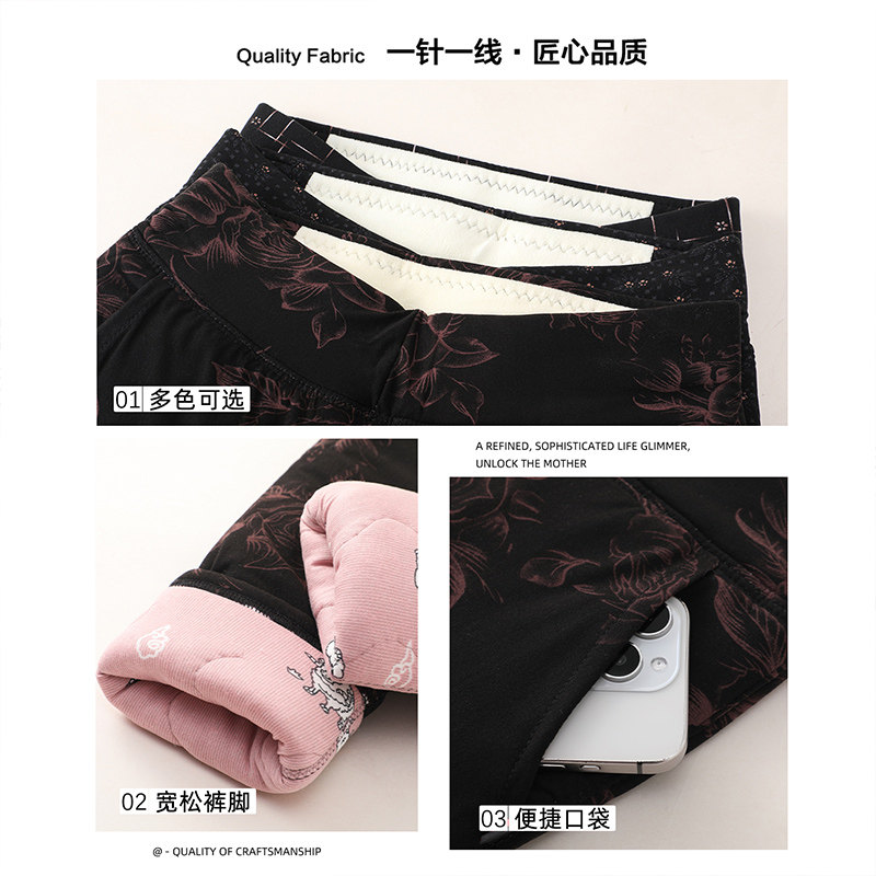 奶奶冬季护膝加绒棉裤中老年人女老太太保暖加厚裤子妈妈秋冬长裤