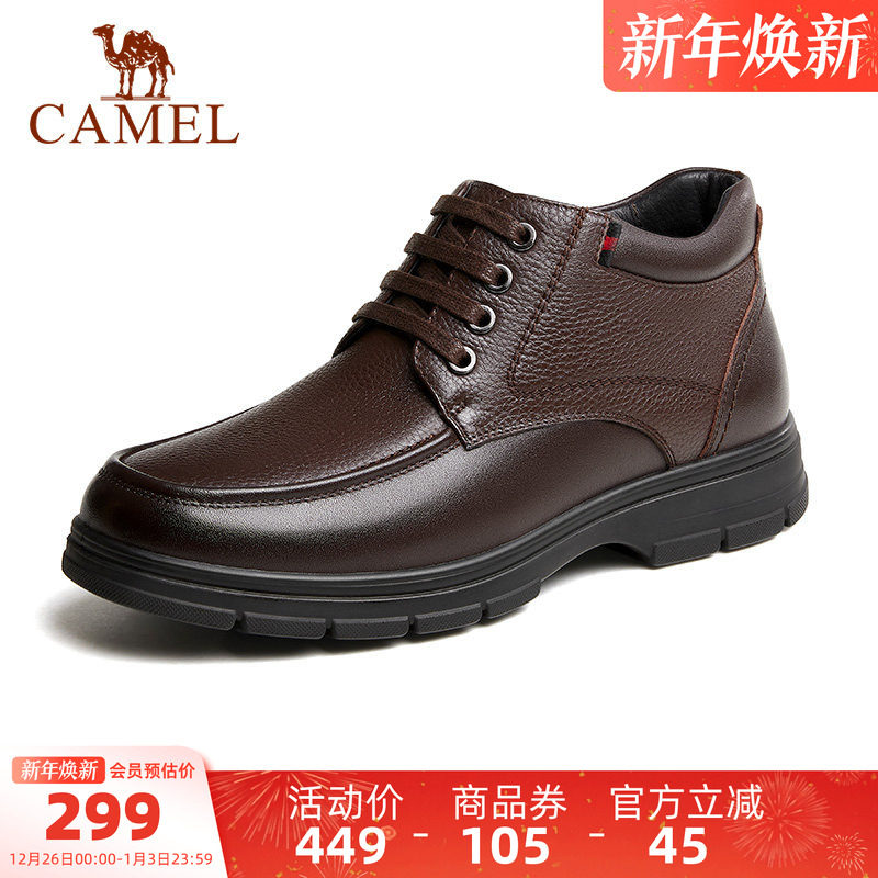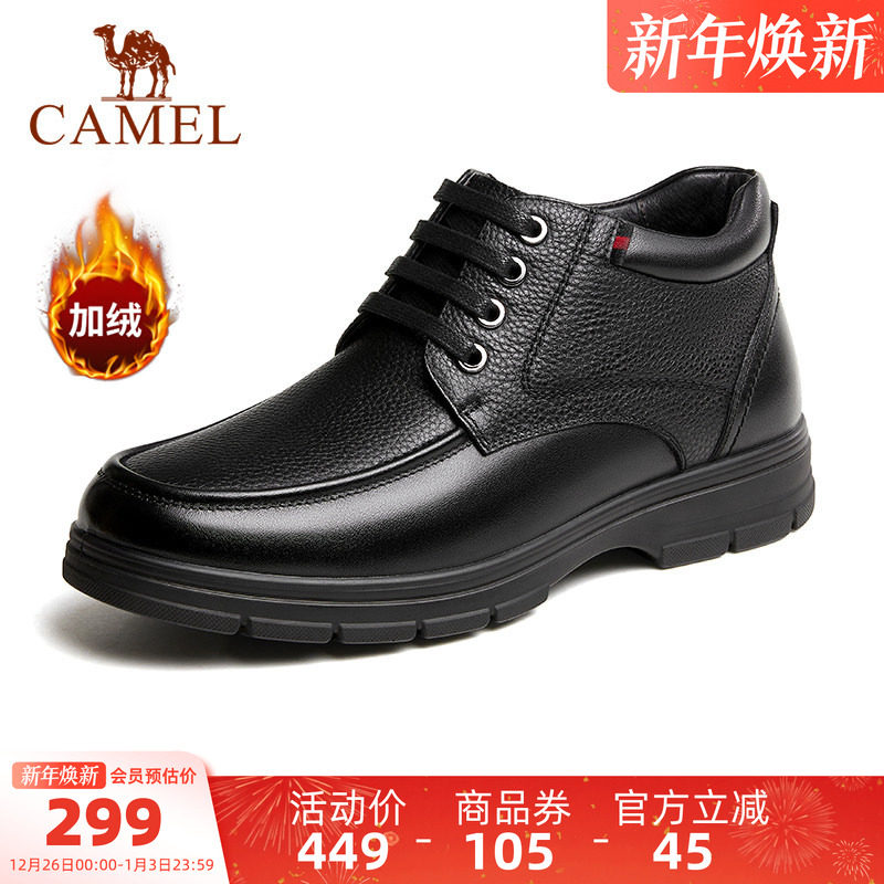 骆驼男鞋秋冬新款高帮皮鞋保暖加绒加厚厚底真皮商务爸爸休闲鞋男