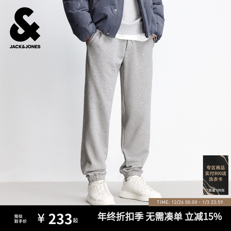 【加绒】杰克琼斯男装25秋新款卫裤美式黑色束脚运动长裤休闲裤子