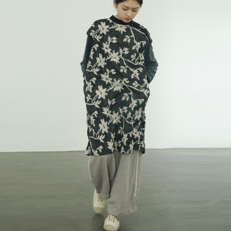 墨脱系列秋冬加厚浮雕提花中长款背心连衣裙文艺禅意套头做旧马甲