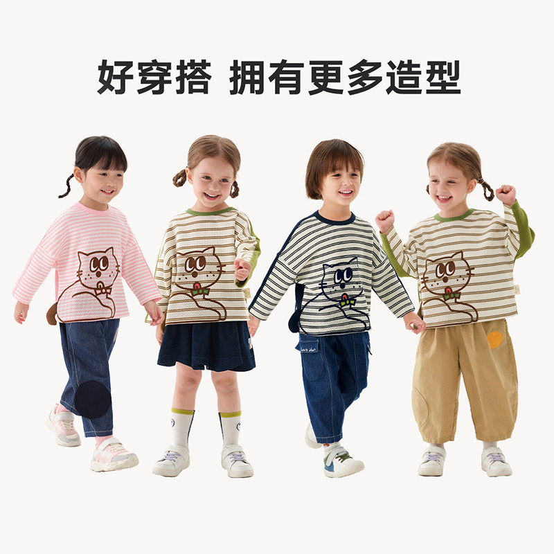 婴蓓依儿童t恤长袖男童女童上衣打底衫宝宝衣服纯棉春秋2025新款