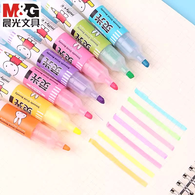 晨光米菲荧光笔标记笔学生用单头记号笔彩色粗划重点做笔记大容量