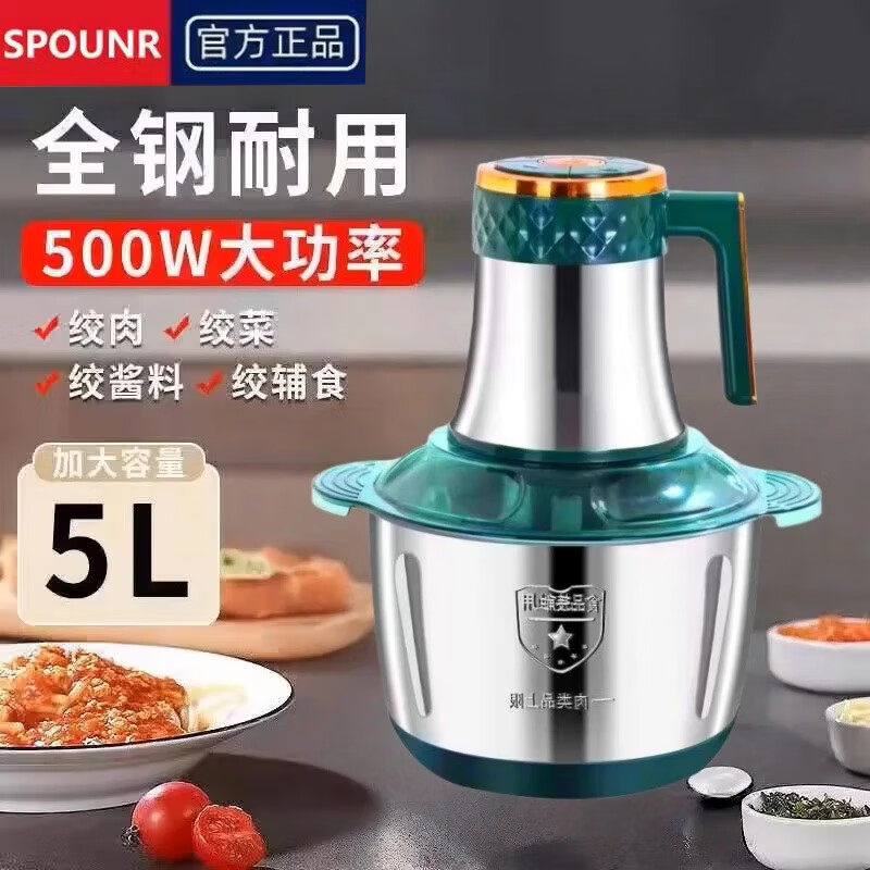 苏泊SPOUNR5升家用大功率绞肉机304不锈钢绞菜辣椒器多功能料理机