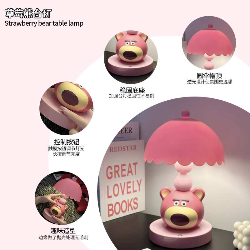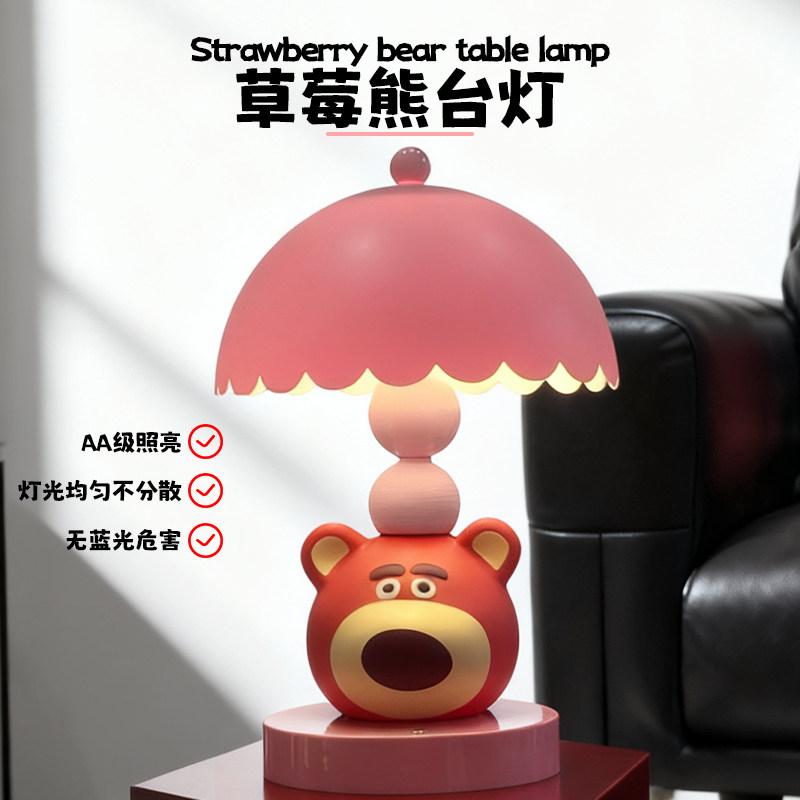 可爱草莓熊台灯桌面装饰品摆件创意儿童房卧室床头小夜灯生日礼物
