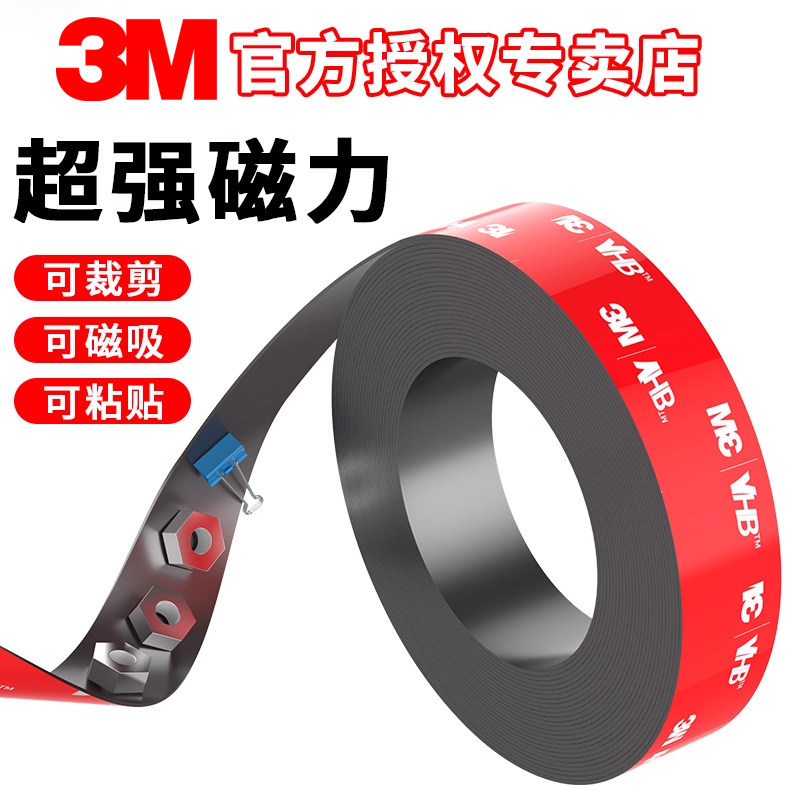 3M正品5608高粘度软磁贴强力高磁性教学课堂黑板白板冰箱门联磁铁贴片车用防水加厚自粘DIY无痕背胶磁力胶带