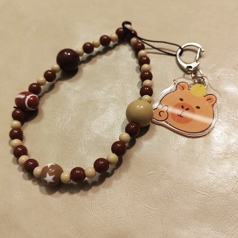复古橄榄球小熊diy手串珠手机壳链条挂饰ccd相机包包手绳原创意