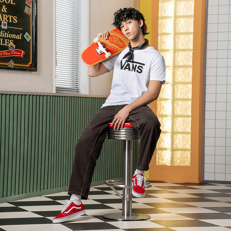 Vans范斯官方 男女情侣白色短袖T恤夏季经典LOGO