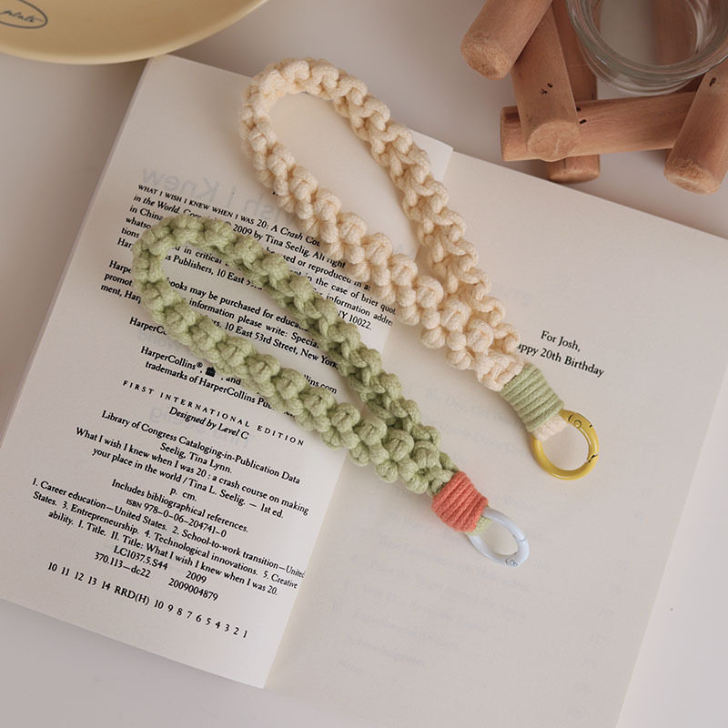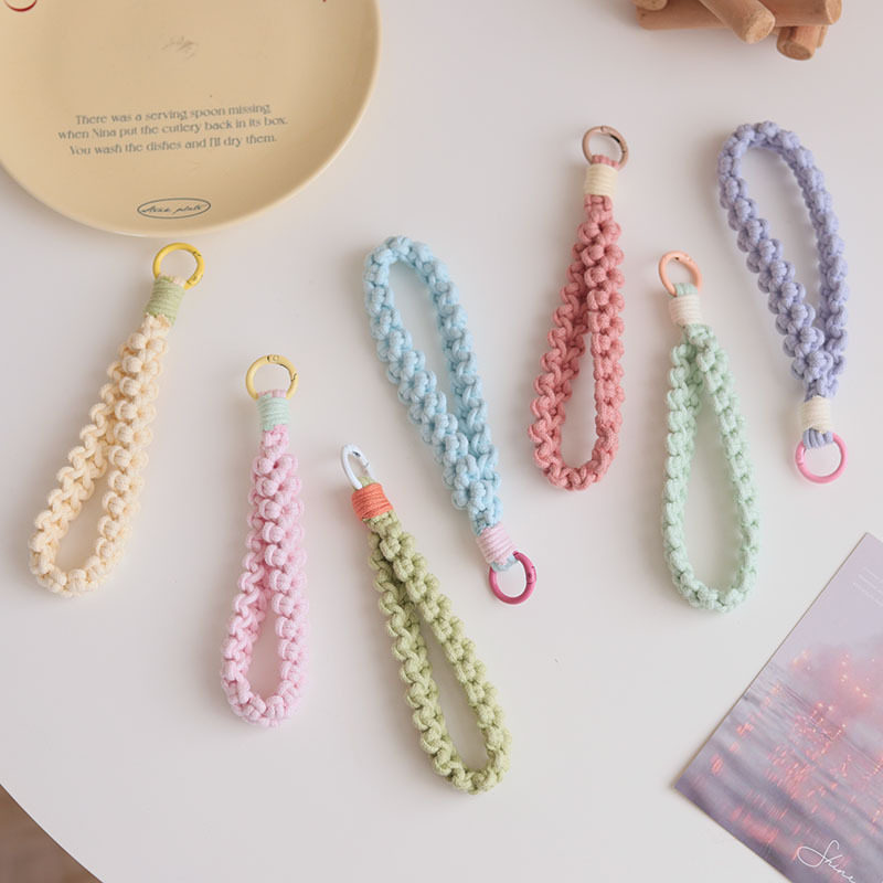 2024新款手工编织棉绳花朵钥匙扣烤漆圆圈撞色手机扣挂件手编配饰