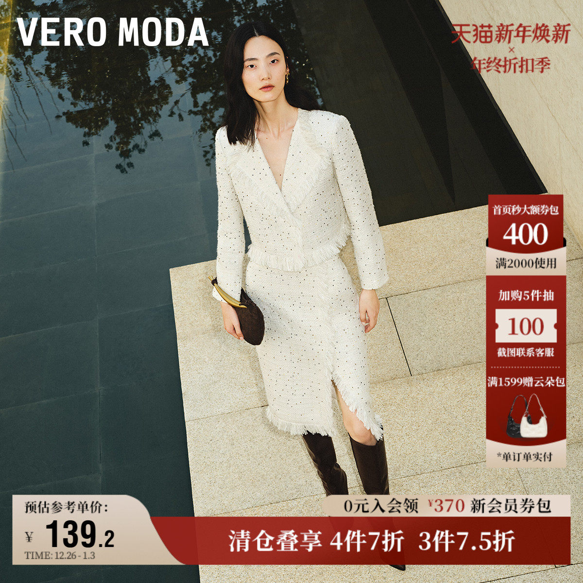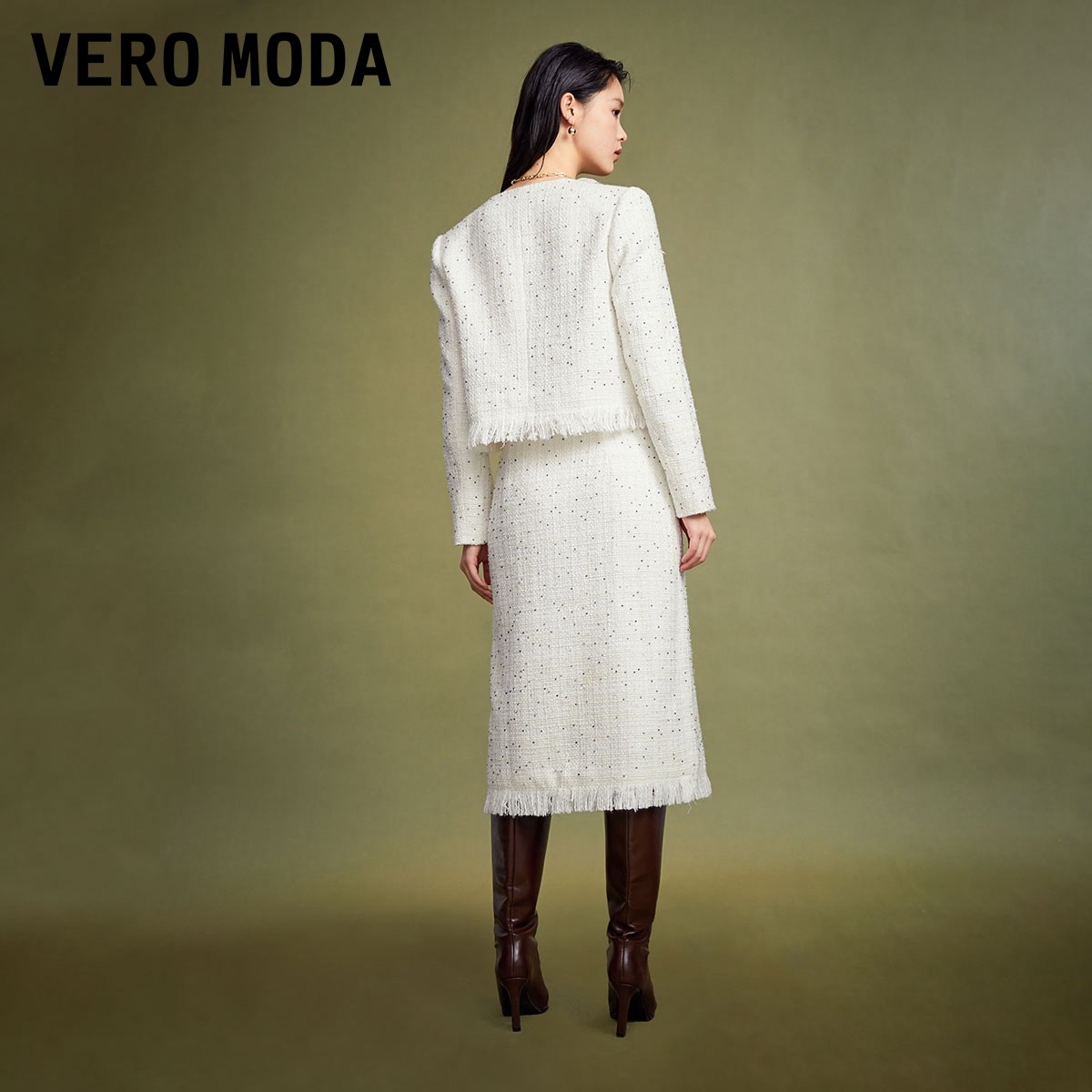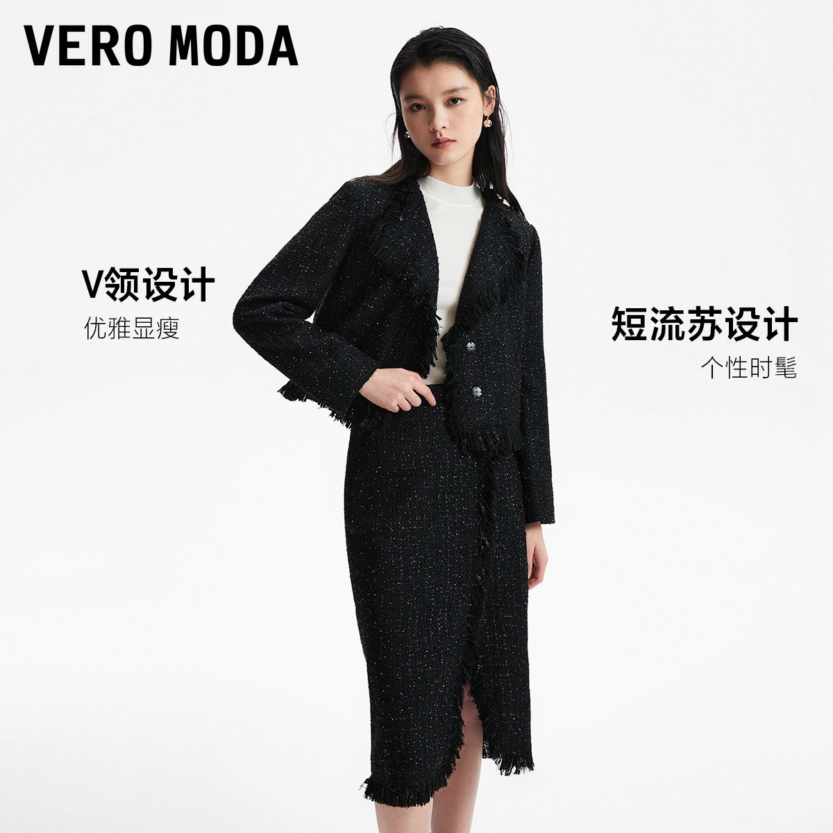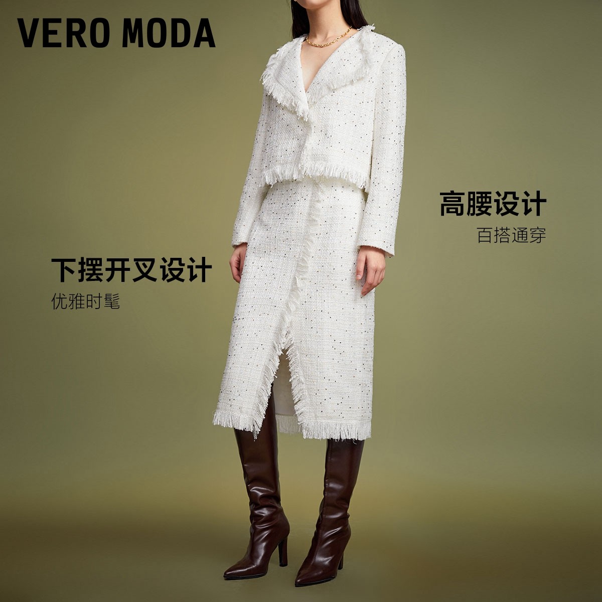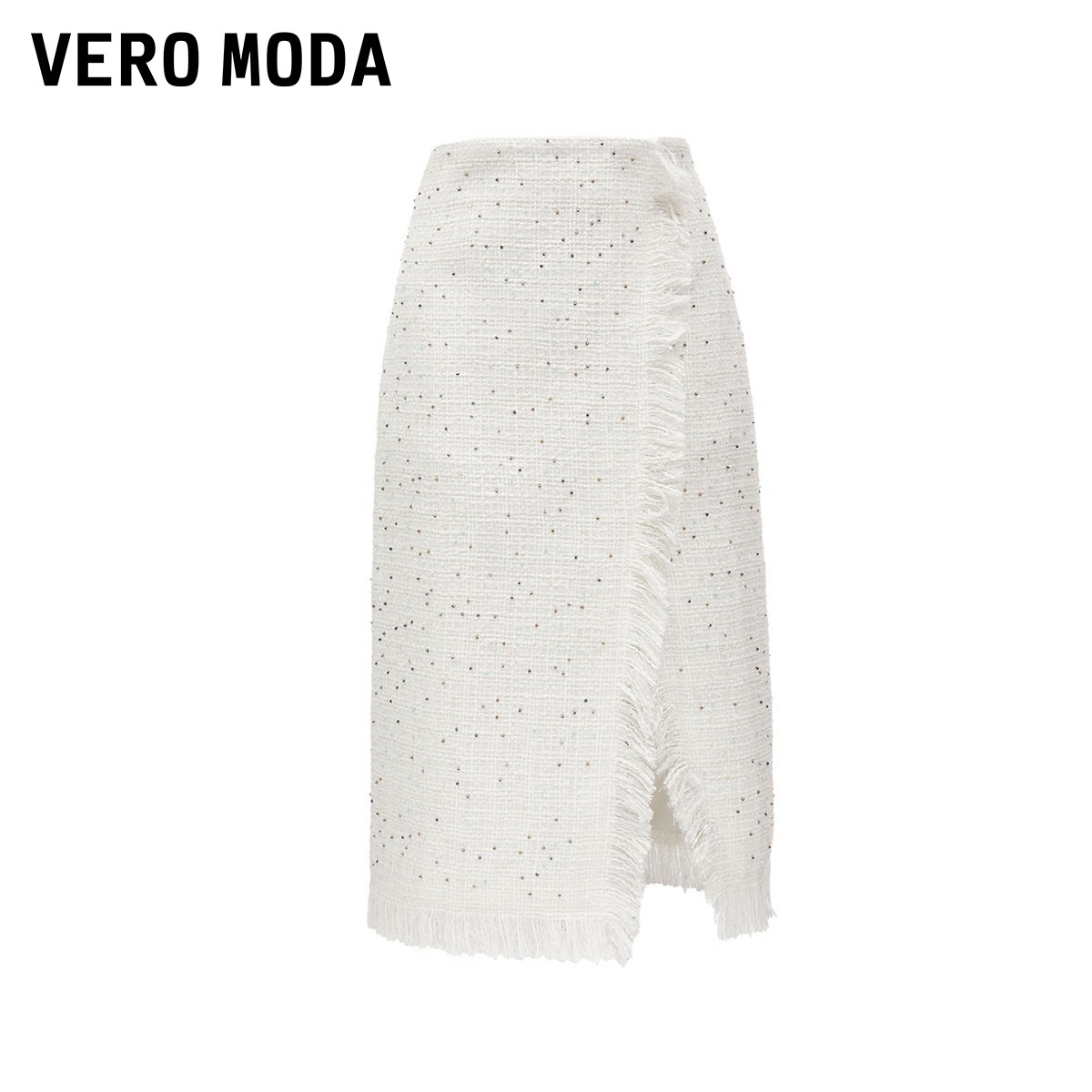 Vero Moda奥莱半身裙秋冬清仓小香风高腰气质流苏下摆开叉女百搭