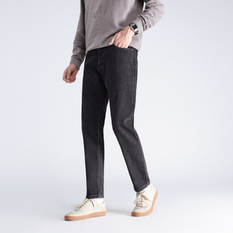 罗蒙冬季牛仔裤男士修身直筒宽松男裤2025新款休闲加绒长裤子男款