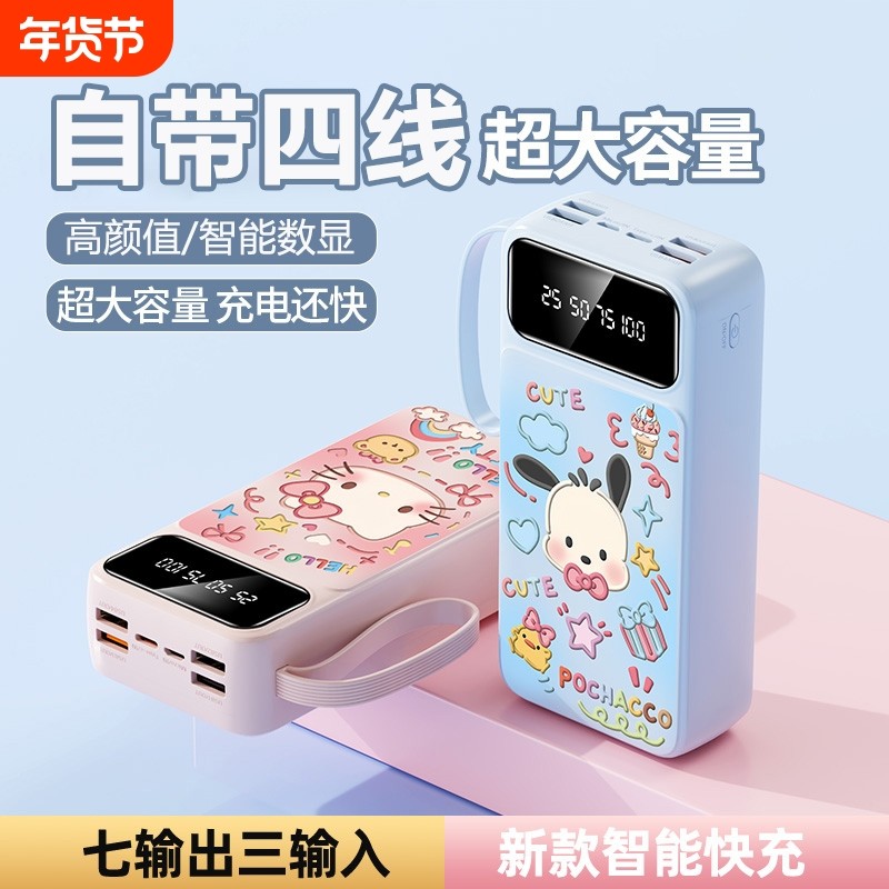 【充电宝3c认证可上飞机】倍思三丽鸥2025新款大容量20000毫安自带线快充移动电源适用小米苹果专用官方正品7