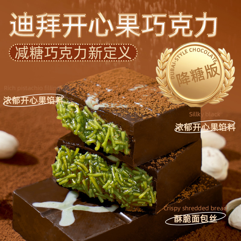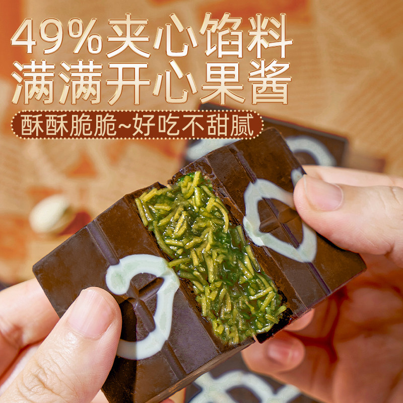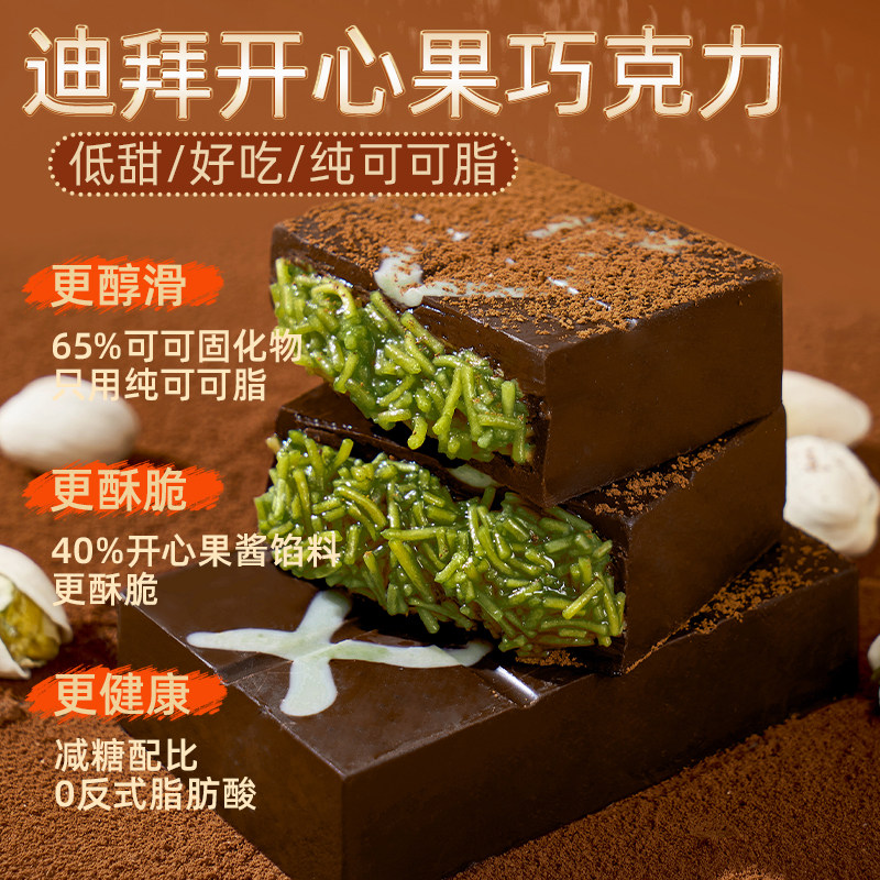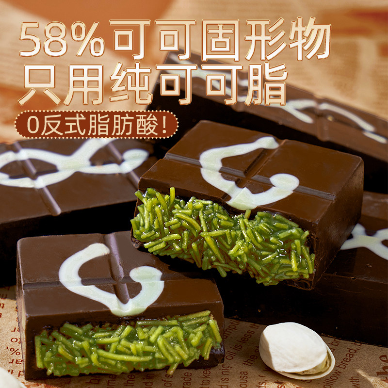 纯可可脂迪拜风味巧克力网红黑巧酥面丝开心果酱夹心巧克力小零食