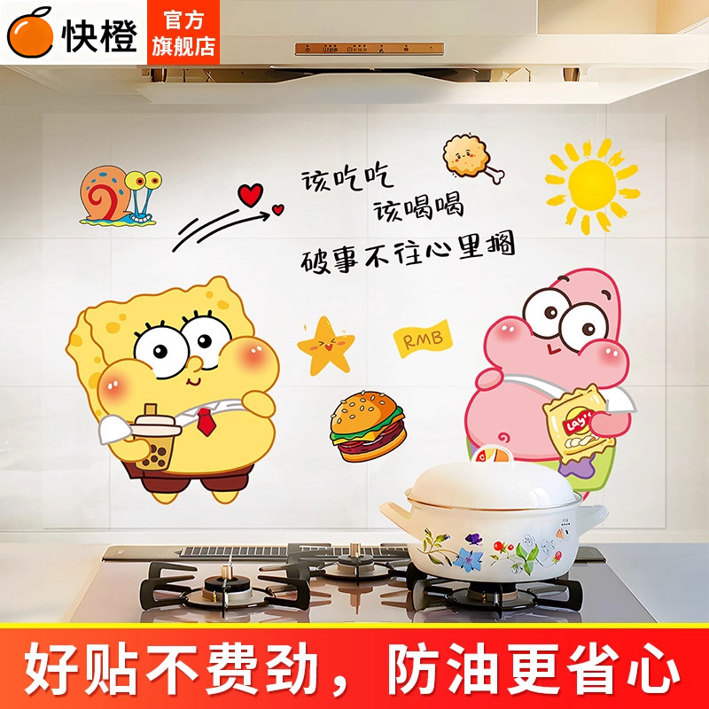 海绵宝宝厨房防油贴纸墙壁装饰静电贴膜灶台油烟墙贴防火墙面墙纸