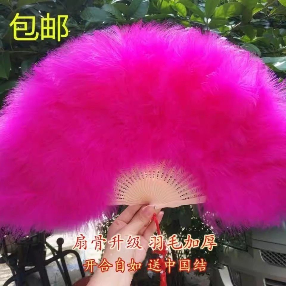 羽毛纯手工中式舞蹈扇折扇25骨羽毛升级版舞台走秀扇