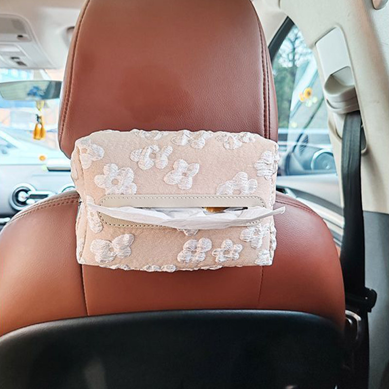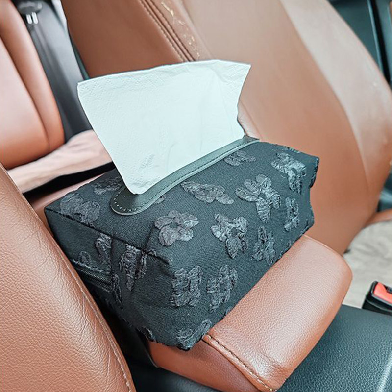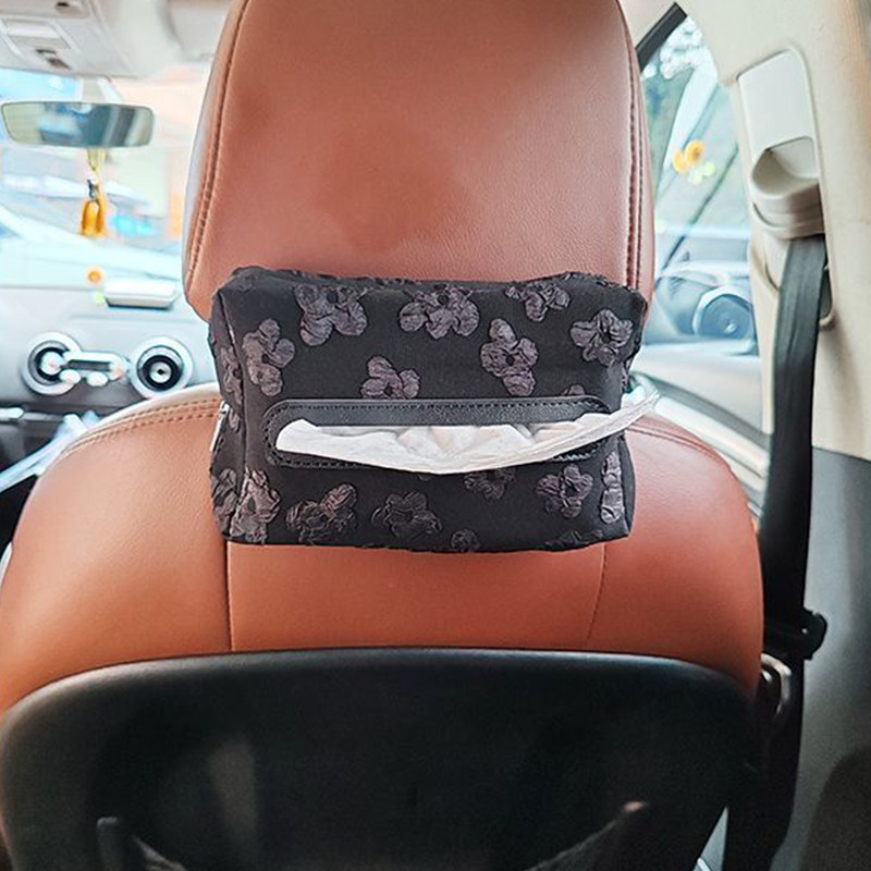 新款小香风浮花车载纸巾盒遮阳板挂式网红扶手绑带座椅后背抽纸盒