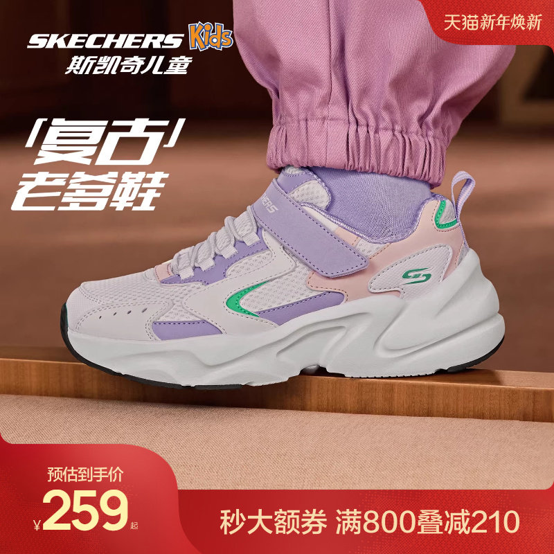 Skechers斯凯奇儿童复古运动鞋女童春秋新款缓震跑步鞋舒适休闲鞋