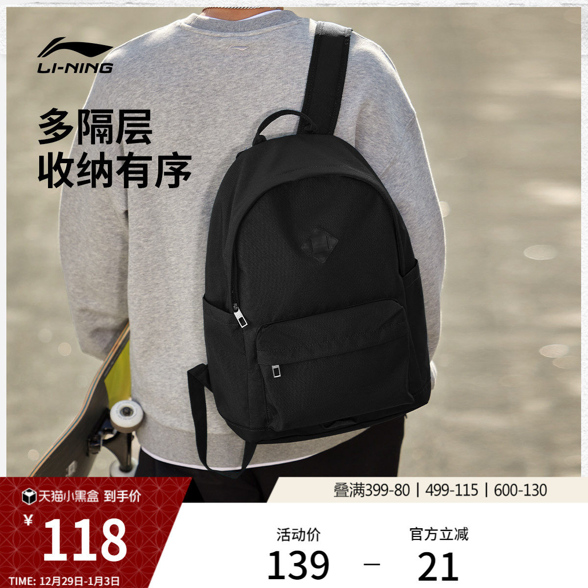 李宁双肩包初高中大学生书包男女官方正品背包时尚户外休闲运动包
