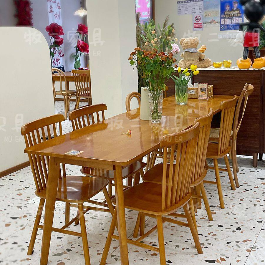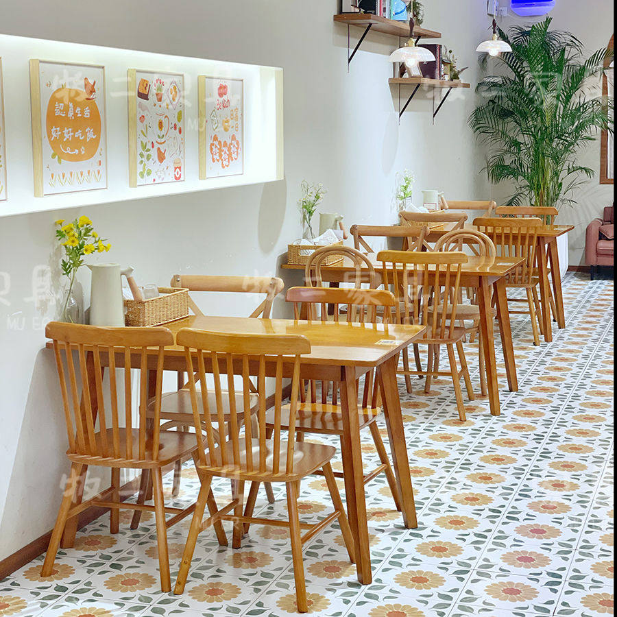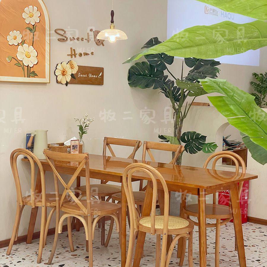 2025新日式复古咖啡西餐厅实木桌椅组合融合餐厅长桌商用奶茶店温