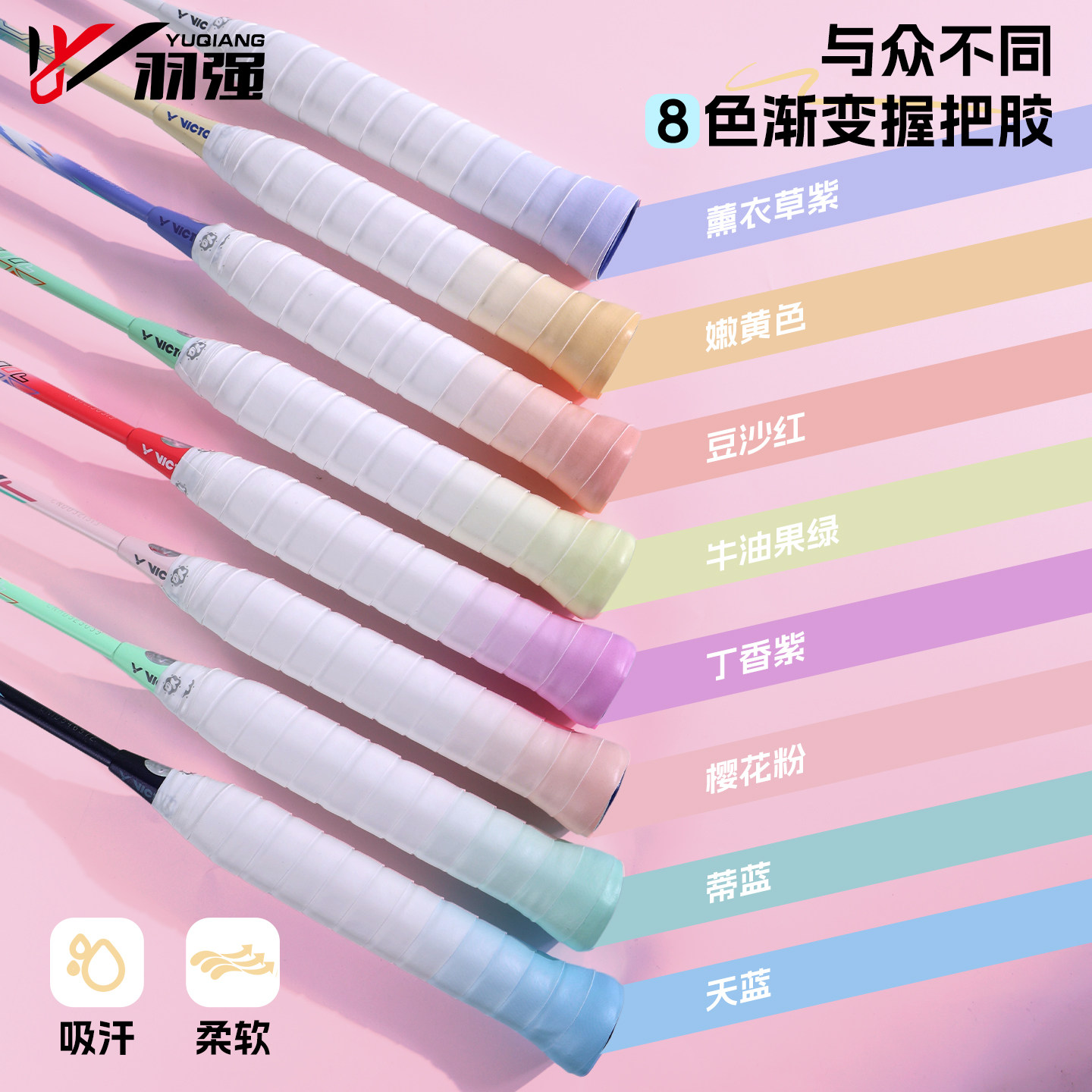 YQ羽毛球拍手胶渐变粘性吸汗带专业耐磨防滑网球手柄缠绕带GR8