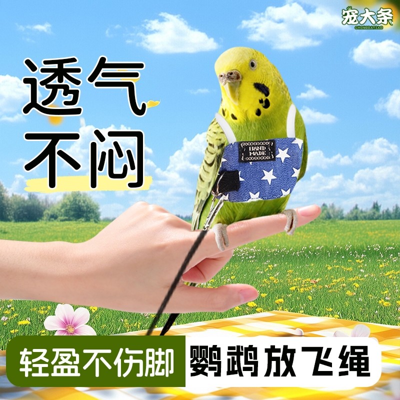 鹦鹉放飞绳不伤脚超轻训练绳子虎皮玄凤背心飞行服外出遛鸟飞行绳