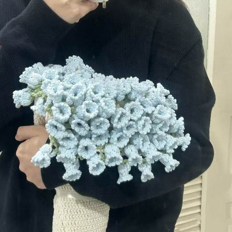 手工毛线diy花束毯子材料包钩织变创意礼物编织玫瑰花铃兰简单